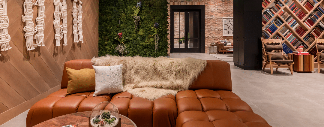 A few key elements featured in Midtown 29 include custom furniture pieces in the common areas, wall design of the lobby, large custom herringbone inspired bookshelf with old books from a former Miami public library, chevron wood paneling throughout, and natural stone used in community bar. Suviche Doral’s interiors were inspired by the vibrant colors of traditional Perruvian materials and fabrics. The restaurant features the city’s first Pisco Bar, swinging chairs and colorful handwoven rope mural.
