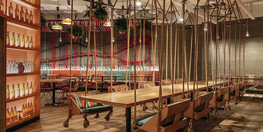 Saladino Design Studios won a Divine Detail award for their design of SuViche Doral. The 3,800 square-foot SuViche restaurant in Miami’s popular CityPlace Doral. The design of the award-winning Peruvian-influenced Japanese restaurant concept was inspired by the vibrant colors of traditional Peruvian materials and fabrics blended with Miami’s tropical environment. The whimsical interiors boast vibrant Peruvian colors, playful swinging chairs, macramé rope art mural, Pisco bar and “Let’s Get Saucy” floral and moss graffiti wall.