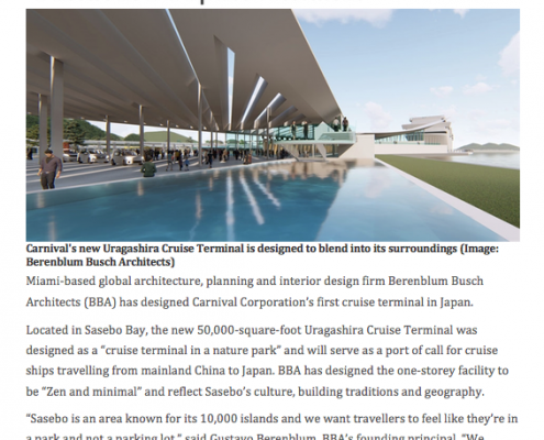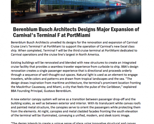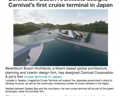 Berenblum Busch Architects is a Miami-based global architecture, planning and interior design firm improving the quality of spaces through human-centric design. The firm has designed projects in different industries including education, residential, hospitality, and cultural, but is best known around the world for its maritime architecture for major cruise lines such as Carnival Corporations, MSC, and Norwegian Cruise Line.