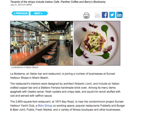 Although the owner had successfully owned and operated Fratelli La Bufala in Miami Beach since 2005, La Moderna was a distinctive, more modern restaurant and needed to be positioned as such and make inroads with the local market in the popular Sunset Harbour neighborhood.