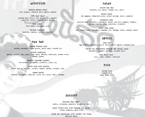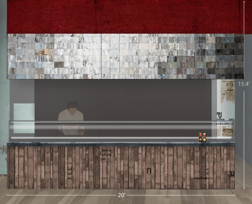 We knew that we had an opportunity to pay off genuine Thai culture in a more urban, street fare setting that influenced Chef Bee growing up, so we commissioned a local artist partner, Daniel Fila (aka Krave), to travel to Thailand to gather imagery, specific artwork and details from the scenes of Bangkok, Chaing Mai and others.